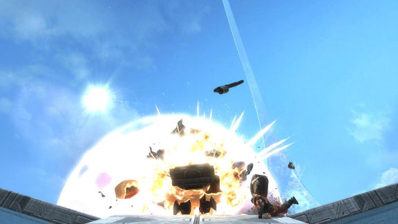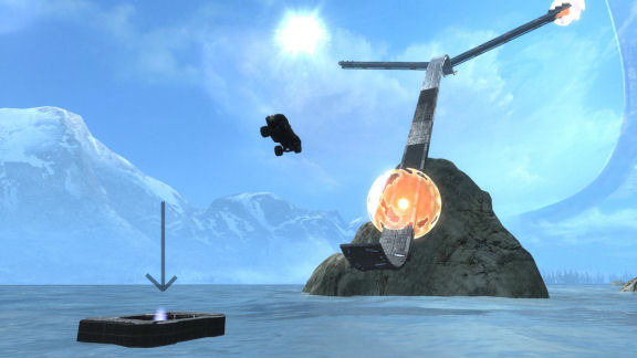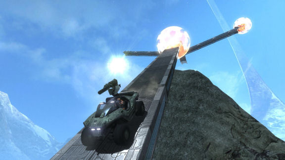 Jump out of your warthog as you soar through the air to land in the teleporter and win!