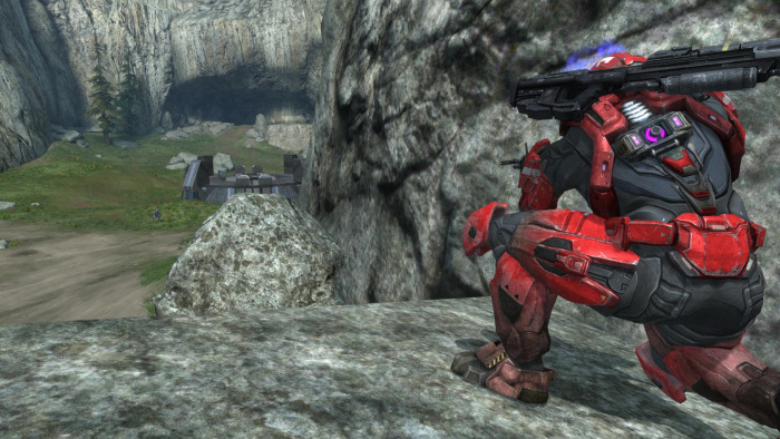 I was starting to recognize that recon was going to be an important part of getting our flag back. Precious seconds were being wasted searching the inside and outside of Blue base to find the carrier. I perched in Blue cave as a lookout. And what did I see...