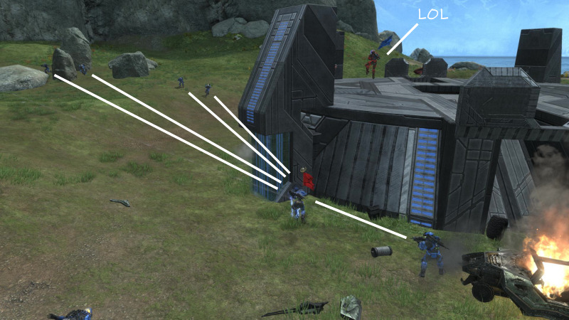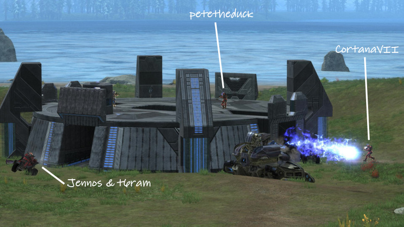 There was actually a lot going on here that you couldn't pick up from the clip, so let's walk through it again: -Cortana and I rushed right side of Blue base. Cortana stayed low, making herself a target for the enemy wraith and giving Jennos and t6ram the chance to slip in the front.